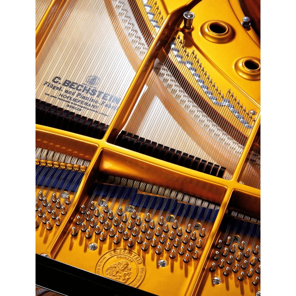 Doskonały dźwięk: rama odlana z najwyższej jakości żelaza jest wyposażona w drążek capo i podwójną skalę C. Bechsteina w celu optymalizacji rozprzestrzeniania się dźwięku.